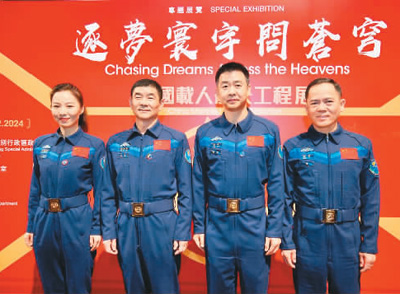 连日来,由神舟十二号乘组航天员刘伯明、神舟十三号乘组航天员王亚平、神舟十四号乘组指令长陈冬、神舟十五号乘组航天员张陆等17位航天相关专家组成的代表团,在港澳开展形式多样的交流活动,在港澳同胞间点燃探问宇宙的热情,激荡出爱国壮志的情怀力量。