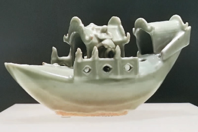 “向东是大海——浙江海洋文化陈列”讲述了从新石器时代至明清时期浙江人与海洋的故事。温州朔门古港遗址是“2022年度全国十大考古新发现”之一,该遗址出土的背刻胡人像青白瓷砚、龙泉窑青瓷刻划花卉纹碗等文物在展览中亮相,反映了宋代海上丝绸之路盛况。