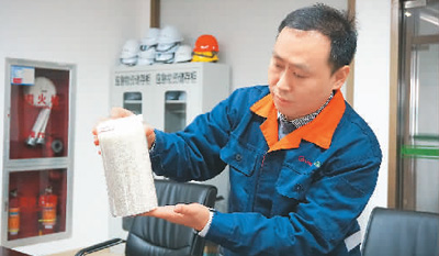 威立雅华菲高分子科技(浙江)有限公司运营总监付现伟展示海洋塑料粒子。 |