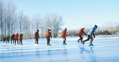 不久前,滑冰爱好者在内蒙古自治区呼伦贝尔市扎兰屯市玉河湾滑冰场滑冰。 韩颖群摄(人民视觉)