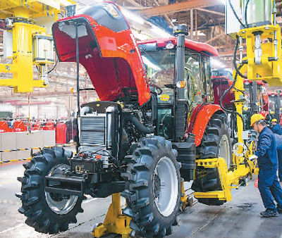 新年以来,位于河南省洛阳市的中国一拖大拖公司加紧生产,赶制订单产品,力争实现“开门红”。去年,该公司出口车辆畅销八十个国家和地区,出口量明显增长。图为工人在该公司总装生产线上装配拖拉机。 |