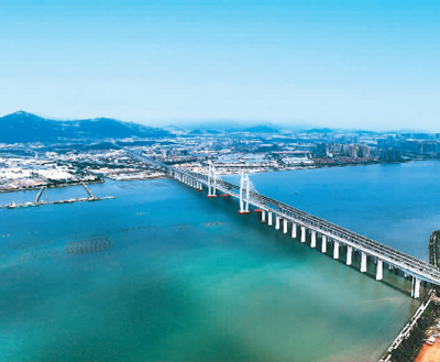 泉州湾跨海大桥(右)与泉州湾公路桥(左)并立于海湾之上。 |