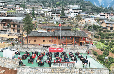 2月5日(腊月廿六),下庄村民聚在一起看村晚、吃百家宴,共迎龙年春节。 |