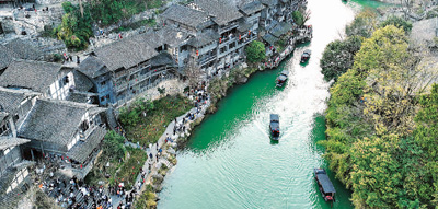春节假期,贵州省遵义市乌江寨景区游客络绎不绝。 |