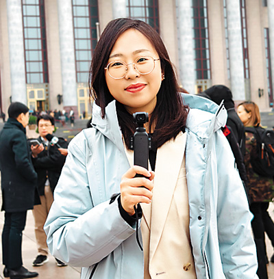 今年,我承担了全国政协委员驻地网络视频采访间的相关工作,协助同事进行拍摄,虽然每晚都忙到十一二点,但我乐在其中。我为后方提供了不少第一手视频采访素材,包括自制的VLOG,努力将采访间的“主场”优势发挥到最大限度。