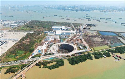 连日来,广东省交通集团投资建设的狮子洋通道工程稳步推进。该项目是继港珠澳大桥、深中通道后,粤港澳大湾区又一超级工程。项目为东西走向多层复合公路通道,其控制性工程狮子洋大桥采用主跨2180米、双层钢桁悬索桥“一跨过江”,计划2028年建成通车。图为狮子洋大桥西锚碇及远处的西主塔承台施工现场。
