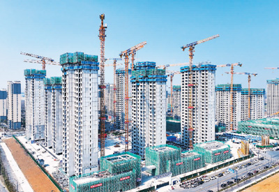 安徽合肥新站高新区加大城市更新力度,统筹推进“拆建安管”一体化。图为合肥新站高新区鹤翔园安置房项目建设现场,工人们正在紧张有序施工。 |