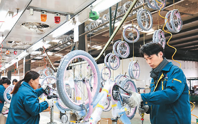 河北省邢台市平乡县年产自行车、童车1.45亿辆,拥有自营进出口权外贸企业129家,是国家级外贸转型基地之一。该县近年来通过完善企业帮扶制度、支持跨境电商扩大出口规模等措施,推动外贸企业做大做强。图为平乡县恒驰车业员工在赶制一批出口日本的童车。 |