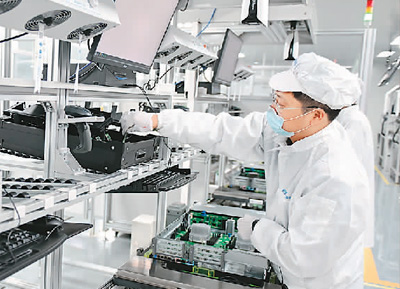 雄安科创中心中试基地,雄安百信信息科技有限公司员工在服务器生产线上工作。 |
