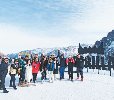 中国游客在哈萨克斯坦琼布拉克滑雪场。 |