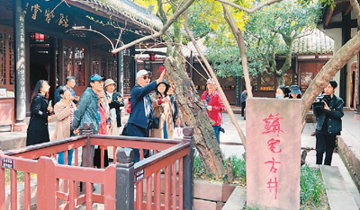 “近年来,三苏祠游客量激增。三苏文化传承千年,与三苏有关的文创产品,也备受游客青睐”。三苏祠博物馆副馆长黄建说。