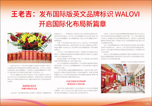 2024年4月8日,广州王老吉大健康产业有限公司(简称“王老吉”)在美国洛杉矶发布国际版英文品牌标识WALOVI。4月10日,王老吉在纽约的第二家凉茶博物馆——纽约第五大道凉茶博物馆举行开馆仪式,这标志着王老吉品牌在全球化发展上又迈出坚实一步。