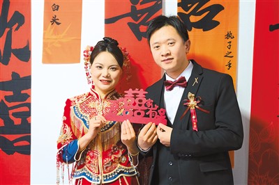 时间上,我们也没有像多数人那样,特别规定新娘出门的时间。婚礼那天,我爱人和平常一样,8点多钟从家里出发,和他的伴郎们走到我家,玩了一些常规的接亲游戏,9点多钟我就跟他们一起出门了。
