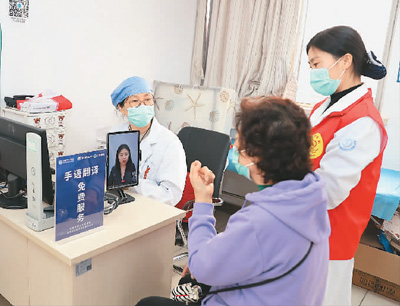 “哪里不舒服?是什么时候知道有高血压的?有没有在吃药?”对于丁弘的提问,面向老人的“翻译官”一边用手语询问,一边像小助理一样同步将回答报出来,就诊流程与普通问诊相差无几。