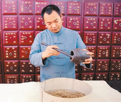 我出生于虞城县刘集乡蔡老家村,家中祖辈从事正骨,最引以为豪的是先辈传承下来的筋骨散热敷疗法,这一疗法集散、醋、热、熨、敷五位为一体,用药配方工艺复杂,从原材料筛选、醋制、酒制、碾碎、过苜再到装袋成品,层层筛选把关,精确配伍。