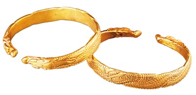 辽代双龙纹金手镯,陈国公主墓出土。 |