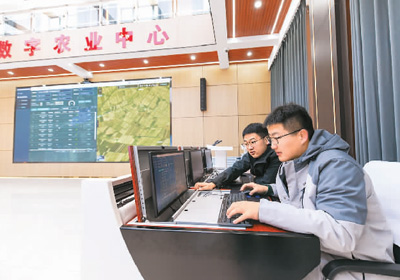 涉农产业快速发展,带动了新生产模式的兴起和更多数字人才需求。图为黑龙江北大荒农业股份有限公司友谊分公司数字农业指挥中心内,工作人员在维护大数据和物联网系统。 |