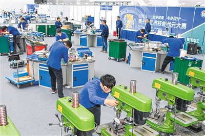 第七届江苏技能状元大赛总决赛近日在江苏省宿迁市开赛。本次大赛以“数字技能”为重点,来自全省的689名选手在人工智能训练师、工业网络智能控制技术等20个赛项中展开激烈角逐。图为选手正在比赛。 |