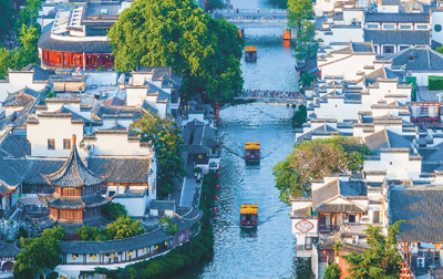 江苏省南京市秦淮区以商文旅融合为轴,联动休闲观光、美食购物资源,推动品牌、商家、街区“点、线、面”相结合,激发城市消费新活力。图为五月十九日,游客乘坐画舫游览南京市秦淮区夫子庙秦淮风光带。