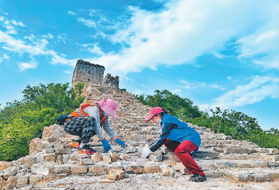 长城保护员在石峡段长城开展日常巡护。 |