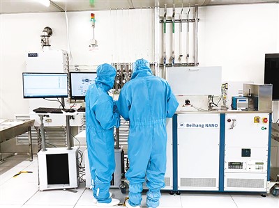 在北京航空航天大学智能微纳公共创新中心,集成电路科学与工程学院学生在对企业提出的课题进行实验研究。 |