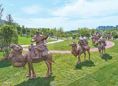 漫步园中,草地上的“丝路驼铃”“和谐共生”等主题雕塑颇具设计感,人们纷纷与之合照留念。身旁,不时走过一些外国游客,他们也想体验一场沉浸式的“中亚之旅”。