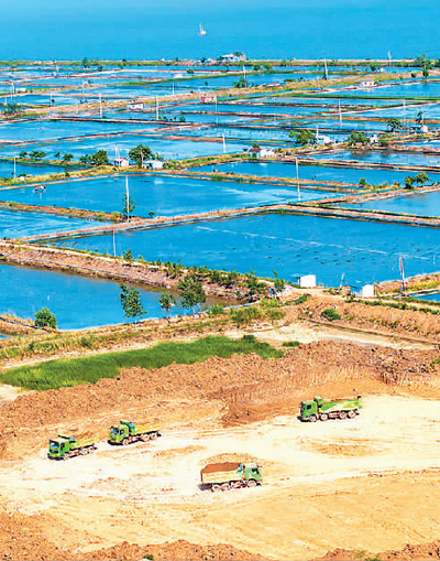 洪泽湖周边滞洪区治理工程是治理淮河38项工程之一。5月16日,江苏省宿迁市泗洪县半城镇,洪泽湖周边滞洪区治理工程环湖大堤施工现场,施工单位正在紧张施工。 |