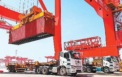 无人集卡在山东日照港作业。 |
