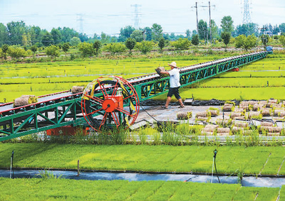 正是夏种好时节,江苏、湖南、浙江、河南等地农民抢抓农时开展水稻起秧、插秧等工作。图为近日,河南省信阳市光山县罗陈乡张楼村青龙河合作社的社员在田间起秧苗。