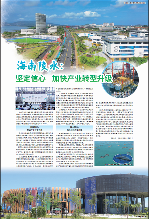 2024年,陵水将坚定信心、迎难而上,重点从以下两个方面加快推动产业转型升级。一是聚焦“四件大事”下好“关键棋”。全力推动数据产业发展成形起势,全力推动海南陵水黎安国际教育创新试验区改革发展,全力推动特色旅游业提质升级,全力推动乡村全面振兴。二是聚焦扩大有效投资下好“先手棋”。抢抓招商引资促投资,努力实现“招商体系成熟高效、项目引入跨越式增长、外资引入全面达标”的目标。稳抓项目落地促投资,按照土地、资金、审批、指标“四合一”的思路,推动项目谋划与要素保障相匹配。狠抓营商环境促投资,深化“政企有约”品牌建设,打造集解惑答疑、招商引资、要素保障、服务企业于一体的综合性平台。
