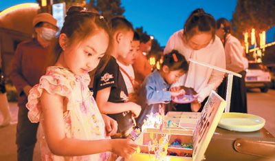 近日,位于甘肃省酒泉市肃州区1969文化创意产业园“后备箱集市”人头攒动、热闹非凡,特色美食、服饰、玩具、文创产品、手工制作等百余种商品吸引了大量市民和游客,助力城市“夜经济”活力提升。图为市民正在逛夜市。