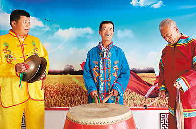 张福利(中)在表演民俗节目。 |