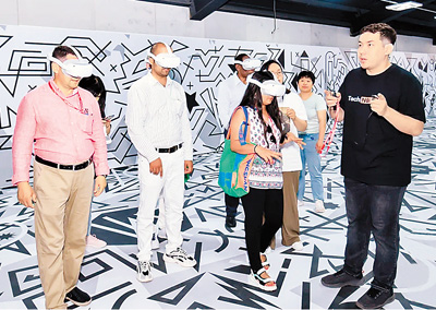 外国嘉宾在首钢园体验元宇宙数字产品。 |