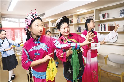 暑假期间,山东省滨州市博兴县博昌街道在各个社区设置具有公益性质的“滨滨学堂”,邀请吕剧、剪纸、草柳编等当地民间艺人走进学堂,免费指导假期中的社区儿童学习各种传统文化。