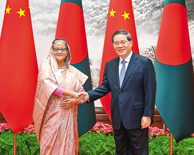 李强指出,中方将始终把发展对孟关系置于周边外交优先方向,同孟方在涉及彼此核心利益和重大关切问题上深化相互理解、坚定相互支持。中方愿同孟方深入对接发展战略,加快推进高质量共建“一带一路”,支持孟南部一体化开发,加强基础设施建设合作,推动贸易优化平衡发展,深化新能源、数字经济、产业园区等领域合作,促进文化、旅游、青年、地方等交流,为两国各自现代化建设增添更多助力。中方支持中国企业同孟方加强产业投资合作,携手提升产业链供应链韧性和安全水平,希望孟方为中国企业在孟经营提供良好环境。中方愿同孟方加强多边领域沟通协调,反对霸权主义和强权政治,更好维护国际公平正义和发展中国家共同利益。