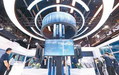 近日,2024全球数字经济大会在北京举行。图为参观者在数字经济沉浸式体验区了解科技产业服务等方面事宜。 |