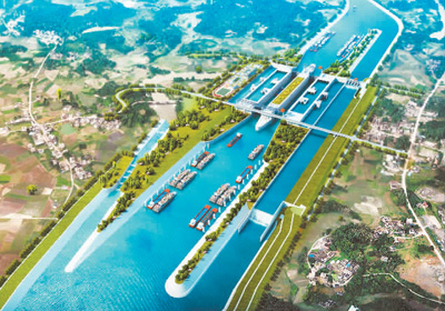 平陆运河建成后,广西乃至西南地区货物通过这条江海联运大通道从钦州港出海,相比原来的航线,可缩短560多公里航程。中国工程院院士、南京水利科学研究院总工程师胡亚安充满信心:“广西开放发展的前景将更加光明。”