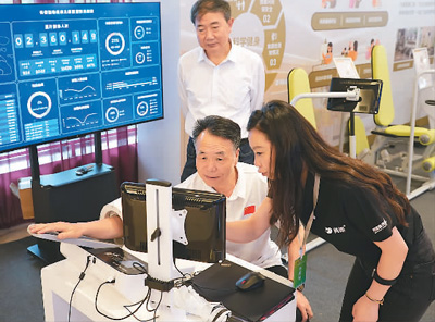 不久前,第九届全国老年人体育科学大会在陕西省西安市开幕。本次大会的主题是“健康老龄化——中国式现代化进程中的老年人体育高质量发展”。图为与会人员在现场体验健康管理仪器。 |