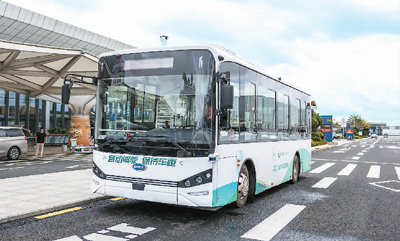 近日,海口美兰国际机场,停放在T2出发层的自动驾驶接驳车。 |