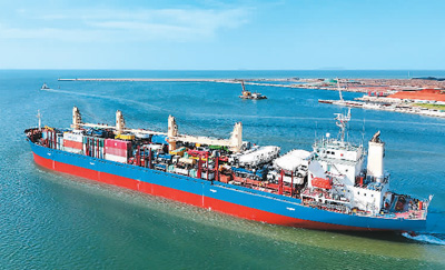 7月31日,满载着工程车辆和建材的“亿星”轮从山东烟台港蓬莱港区起航驶往圭亚那,标志着山东首条至加勒比地区的班轮航线正式开通。近年来,烟台港持续织密全球航线网络,深耕多式联运通道建设,服务“一带一路”建设能力进一步增强。图为“亿星”轮驶离烟台港蓬莱港区。