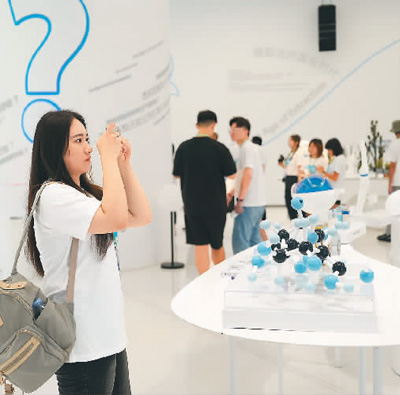 2024“范长江行动”香港传媒学子山东行近日启动,来自香港的学子将走访山东济南、青岛、济宁、泰安等市,了解山东生物医药、文化旅游等产业发展情况。图为香港学子在参观位于济南的世界透明质酸博物馆。