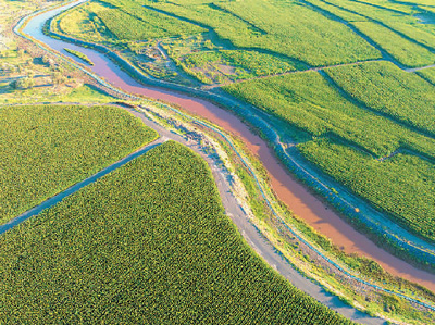 甘肃省张掖市不断探索盐碱地治理技术,通过高标准农田建设,依托覆膜浅埋滴灌、水肥一体化作业等,使昔日盐碱滩变为制种玉米示范田。图为张掖市甘州区三闸镇高寨村万亩制种玉米示范基地。 |