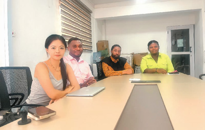 方菁(左一)与非洲合作伙伴们在公司会议室。 |