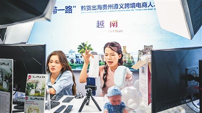 留学生在中国—东盟教育交流周跨境电商展区直播带货。 |