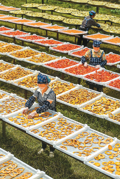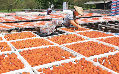 福建省福州市永泰县埔埕村村民在晾晒李干。 |