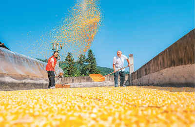 重庆市黔江区蓬东乡蓬勃村村民在晾晒玉米。 |