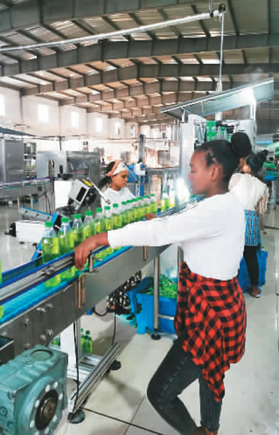 “近年来,中国企业在非洲国家承建了一批大型基础设施项目,得到非洲民众的欢迎和认可,进一步深化了中非民间友谊。”方磊说,“作为在海外发展的民营企业,我们也要积极参与到中非友好合作事业中去,促进中非经贸文化交流和民心相通。现在,我们的饮料厂新厂房正在建设中,预计产量是原来的两倍,将为当地民众提供更多就业岗位。”