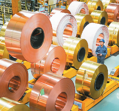 浙江省宁波市重点打造稀土磁性材料、化工新材料、特色工艺集成电路等十大标志性产业链。图为日前,工人在宁波市江北区一家铜加工企业的5G智能工厂吊装产品。 |
