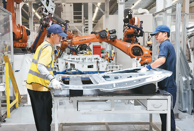 福建省福州市闽侯县大力发展自动化、智能化汽车产业,通过完善财税、金融支持政策,引导创新资源向企业集聚,推动当地汽车制造业做大做强。图为在闽侯县青口汽车工业园区一家智能制造企业生产车间,工人进行汽车车身钣金件产品生产作业。 |