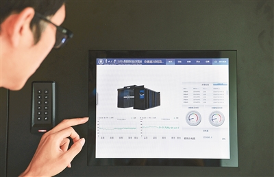 工作人员在贵州大学省部共建公共大数据国家重点实验室算力中心检查微模块动态环境监测系统运行情况。 |